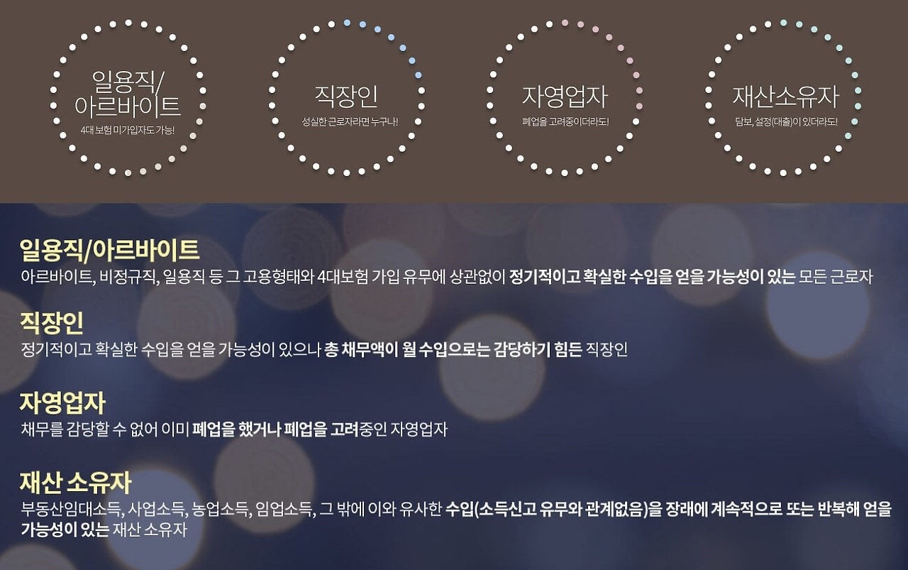 도박, 주식, 사채, 카드빚, 지인 빚까지 다양한 채무도 신청 가능!